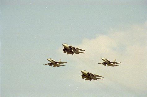 編隊飛行の基本、ダイヤモンド編隊です。 4機の飛行機が菱形の頂点に並ぶように飛びます。 平面上に並ぶと、後の方の視界が悪くなるので、高度差を付けます。