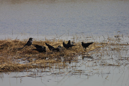 ハシブトガラスの群れ。